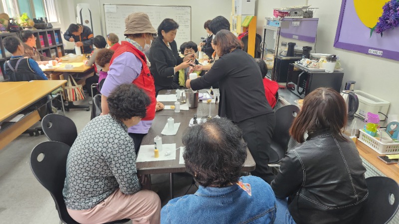 경남조은장애인평생학교 학생들은 1교시 국어 수업 후 2교시 토탈공예 시간에 2가지 천연화장품, 핸드크림과 미백 에센스를 만들어보았습니다. 겨울철 건조해진 날씨로 인해 손이 자주 트고 거칠어지는데 라벤더오일을 넣은 핸드크림을 만들었더니 모두들 좋아하시네요. 핸드크림은 핸드크림 베이스에 8가지 재료를 정량에 맞게 혼합해 마지막에 라벤더오일을 넣어주었더니 향긋한 핸드크림이 완성되었습니다. 이어 미백에센스베이스와 7가지 재료를 정량에 맞게 혼합하였더니 완성되었네요. 즐거운 토탈공예 시간이었습니다.