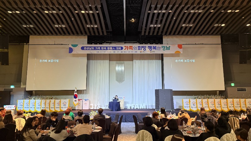 경상남도는 25일 오후 1시 30분 창원 그랜드머큐어 앰배서더 그랜드볼룸홀에서 도내 가족센터 직원들의 노고를 격려하고 화합을 다지는 ‘2025 경상남도 가족행복 동행人 대회’를 개최했다고 밝혔다.