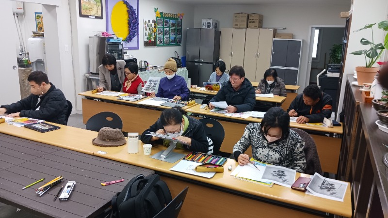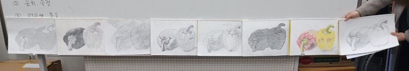 경남조은장애인평생학교 학생들은 1교시 창체 수업 후 2교시 미술스케치 시간에 지난시간 그린 파프리카에 명암을 넣어보고 파프리카 특징을 살리기 위해 어떤식으로 포인트를 주어야하는지 배워보고 실습해보았습니다. 학생들 모두 본인이 그린 파프리카가 입체적으로 표현되는 것에 있어서 신기함을 느끼고 재미있어하며 즐겁게 미술스케치 시간을 보내며 힐링해보았습니다.