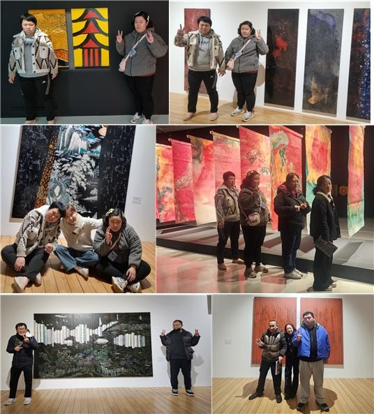 발달장애인들이 도립미술관을 찾았다. 겹겹의 시간이라는 주제로 전신된 미술작품을 감상하며