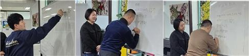 발달장애인의 외부활동을 보다 더 적극적으로 지원하고자 올해 가고 싶은 곳을 칠판에 직접 적으보며 주의해야할 사항을 함께 적으며 자신의 이야기를 전한다.