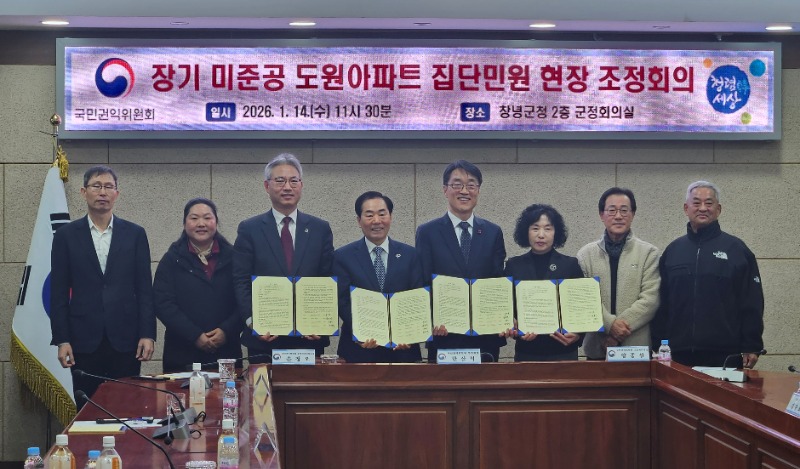 경상남도는 14일 오전 11시 창녕군청에서 열린 국민권익위원회 공동주택 집단민원 현장조정회의에서 장기 미준공 공동주택 문제해결을 위한 조정 절차에 참여했다고 밝혔다.