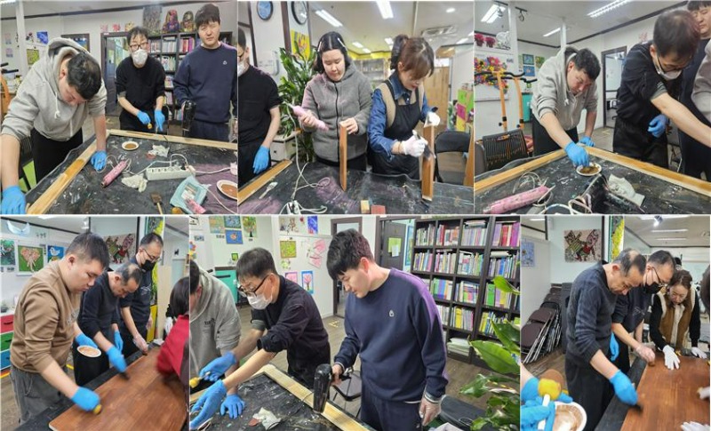 발달장애인주간활동센터 뜨레봄은 목재를 활용한 DIY체험 활동을 통해 책상이 만들어 지는 과정을 익히며 하나 둘씩 배워 나간다.