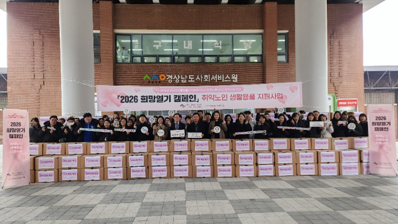 경상남도통합돌봄지원센터(경상남도사회서비스원, 원장 조철현)는 2월 10일(화), 저소득‧혹한기 등 생활지원이 필요한 취약노인을 대상으로 생활용품 지원사업을 추진하였다. 이번 사업은 센터 내 노인맞춤돌봄서비스 광역지원기관 사업의 일환으로 진행된 ⌜2026년 희망열기 캠페인⌟의 하나로, 경제적 어려움을 겪고 있는 취약노인의 기본적인 생활 유지를 위한 생활용품을 지원함으로써 경제적 부담을 완화하고 정서적 지지를 도모하고자 마련되었다.