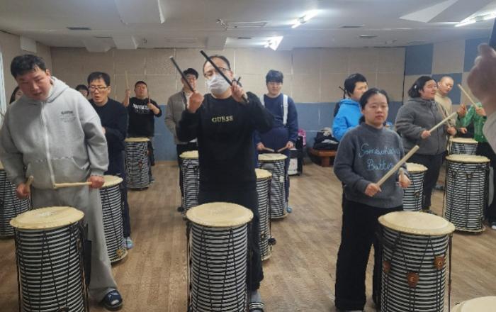 발달장애인주간활동센터 뜨레봄의 발달장애인들은 식재료를 자르고 볶으며 요리를 만드는 체험을 통해