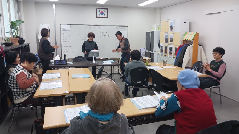 경남조은장애인평생학교 학생들은 노래교실 시간에 각자의 노래자랑으로 시작하여 노래를 뽐내며 흥겹게 흥을 올리고, 이어 오늘의 주제곡으로 남진의 "둥지"를 댄스타임과 곁들어 신나게 춤을 추며 배웠습니다. 언제든 "둥지"노래는 불러도 불러도 질리지 않는 신나는 댄스곡으로 학생들의 댄스가 빠지지 않았답니다. 이어 "보라빛엽서"로 임영웅이 불러 더욱 알려진 노래로 잔잔하고 애절한 노래로 배워보았습니다. 빠른템포의 노래와 잔잔한 템포의 노래를 번갈아 가며 불러보니 역시 느낌이 확연히 다름을 알수 있었습니다. 사진속의 학생들 모습이 너무 보기 좋으며, 역시 조은학교 학생들은 노래를 너무 좋아하시는구나~ 라는걸 새삼 또 느끼게 됩니다. 오늘 이렇게 또 즐겁고 행복한 하루를 보내봅니다.