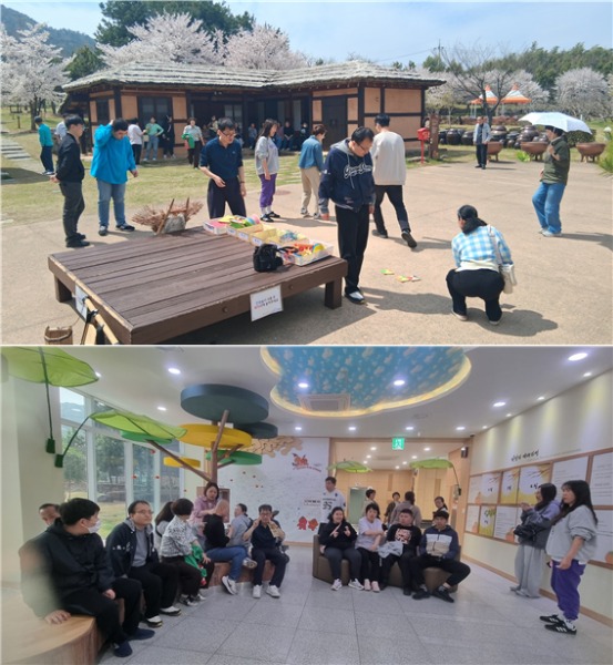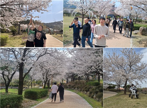 시설내 활짝피어난 벗꽃을 감상하며 전통놀이체험을 하며 공원을 산책하며 즐거운 시간을 보냈다.