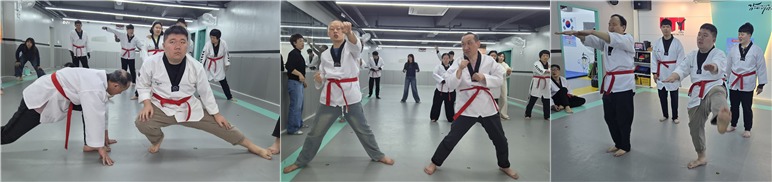 발달장애인은 태권도를 배우고 도장을 힘차게 달리며 장애물을 넘고 앞구르기를 하는 등 여러가지 운동에 매진한다.
