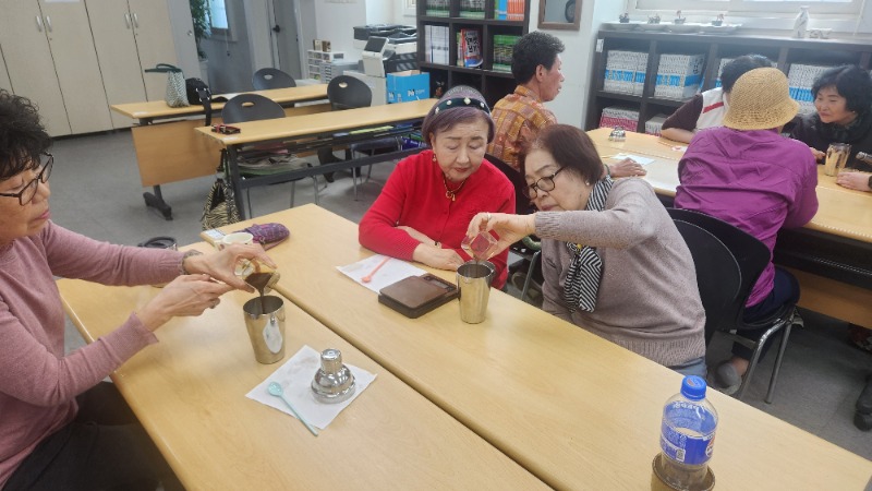 경남조은장애인평생학교 학생들은 홈바리스타로 사케라또를 만들어보는 시간을 가져보았습니다. 사케라또를 만들기 앞서 사케라또의 의미와 만드는 방법을 영상으로 확인해보았으며 사케라또의 종류인 베이직 사케라또와 돌체 사케라또에 대해 알아보았습니다. 사케라또를 만들기 위해 쉐이커를 사용해야 하며 30초간 열심히 흔들어 거품을 많이 만들수록 깊고 맛있는 사케라또가 만들어진다는 것을 확인할수 있었습니다. 팀별로 직접 베이직 사케라또와 돌체 사케라또는 만들어 맛보는 시간을 가져보았습니다. 학생들 모두 베이직 사케라또보다 돌체 사케라또를 더 선호함을 알수 있었습니다. 확실히 우유를 넣어 만든 돌체 사케라또가 더 부드러워 더 선호했던 것 같습니다. 재밌는 홈바리스타 시간이었습니다.