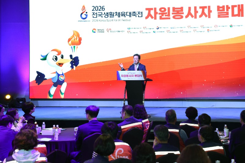 경상남도(도지사 박완수)는 8일 김해 롯데호텔앤리조트 가야홀에서 ‘2026 전국생활체육대축전’의 성공적인 개최를 지원할 자원봉사자 발대식을 열고 본격적인 활동의 시작을 알렸다.