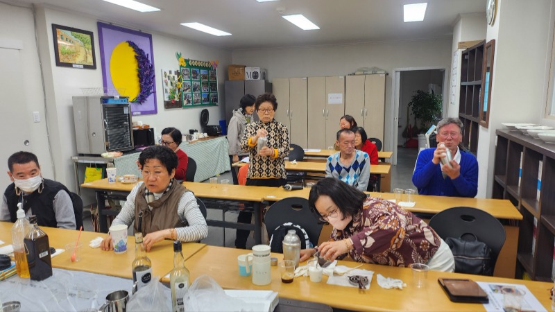 경남조은장애인평생학교 학생들은 홈바리스타 시간에 <사케라또>를 만들어 보는 시간을 가졌습니다. 사케라또의 종류는 <베이직과 돌체> 2가지로 나뉘며 쉐이커를 가지고 흔들어서 사케라또를 만드는 방법입니다. 먼저 베이직 사케라또는 쉐이커에 얼음과 에스프레소를 넣어 신나게 30초를 흔들어 준후 거품이 생기면 잔에 따라서 먹는 진한 에스프레소가 느껴지는 커피입니다. 두번째, 돌체 사케라또는 쉐이커에 얼음과 우유를 넣은후 신나게 흔들어 준 다음 에스프레소를 담은 잔에 우유를 천천히 부어주면 라떼형 사케라또가 완성됩니다. 두가지 다 맛이 다르고 쉐이커만 있으면 쉽게 집에서 만들어 먹을 수 있는 홈카페 레시피입니다. 깊고 진한맛을 느낄수 있고 시럽을 넣지 않아도 깊고 달달함이 느껴지며 카페에서 판매하는 커피와는 확연히 차이점이 나는 그런 맛이었습니다. 학생들이 모두 재미있게 만들어 보며, 만드는 과정을 신기해 하고 맛도 확연히 맛있다고 하며 즐거운 홈바리스타 수업을 마무리 하였습니다.