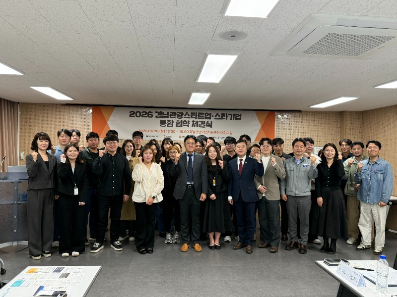 경상남도(도지사 박완수)는 경남관광재단 관광기업지원센터 주관으로 ‘2026 경남관광 스타트업 7기’에 최종 선정된 관광 스타트업 20개 기업과 지난 20일 협약을 체결하고 본격적인 지원에 나선다고 밝혔다.